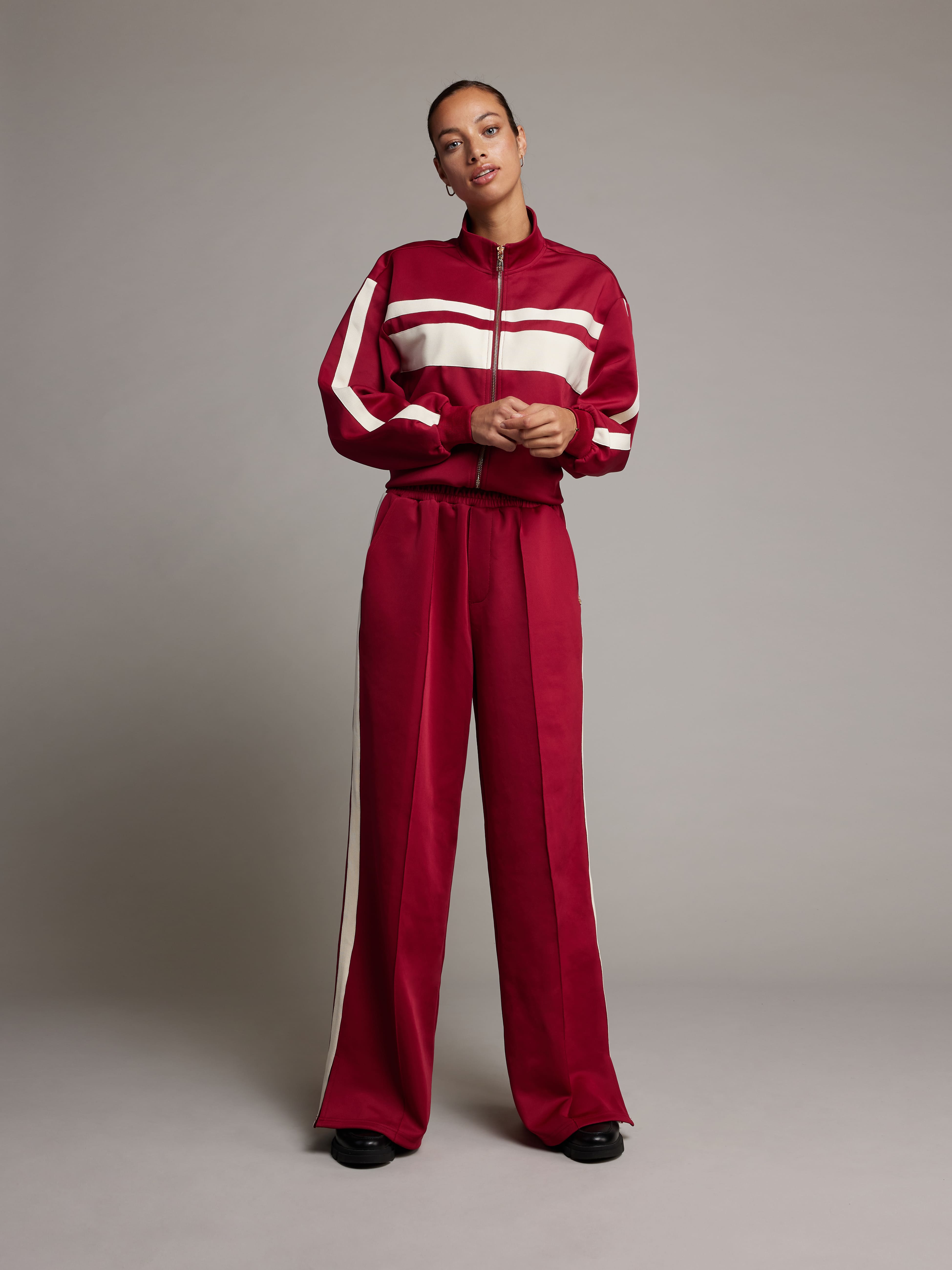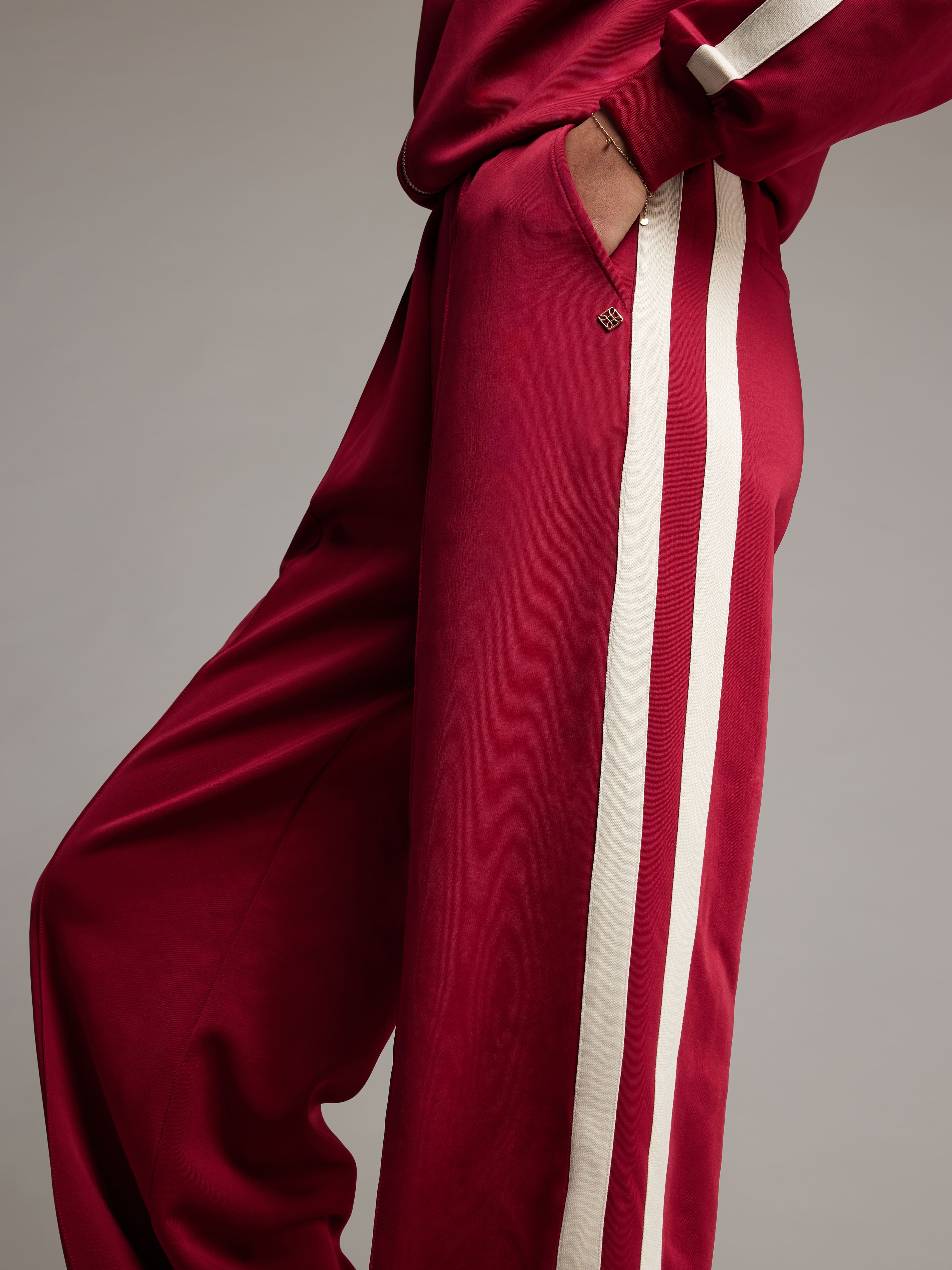 The Nicole Pants are cut from 93% polyester and 7% spandex, giving them a lightweight, flexible feel that’s perfect for all-day comfort. Designed with side pockets and contrast stripes, they bring a sporty yet refined touch. Style them solo or match them with the Taylor Jacket for a complete set.